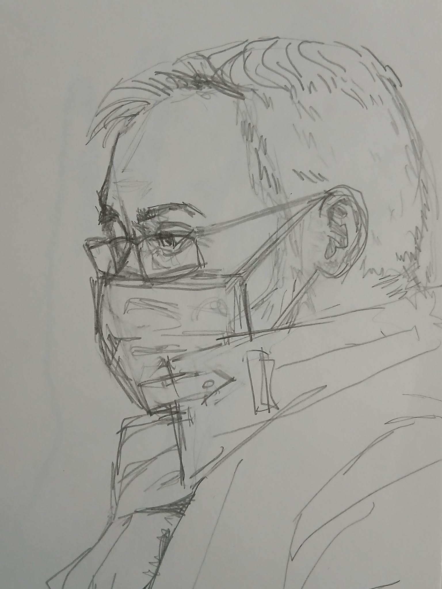 A sketch of my father made in the hospital. When we got in the car back home I started reading Kafka's "Metamorphosis" on my phone. Year 2022, autumn/winter.